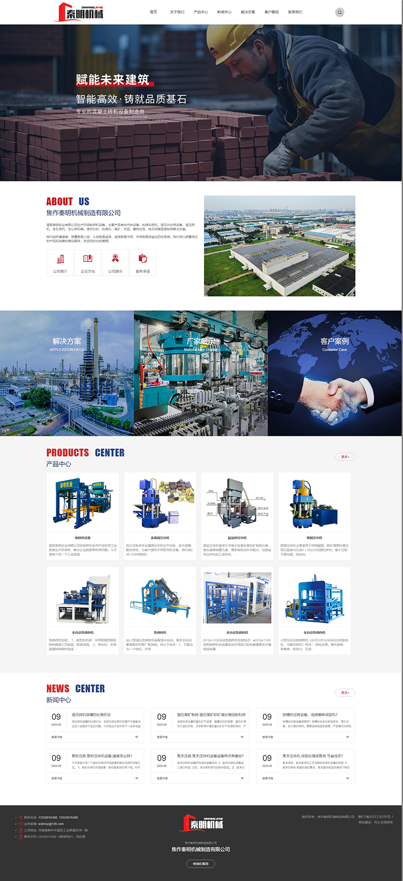 焦作温县某机械制造客户网站制作交付,网站采用响应式布局,色调采用蓝红色调,整体大气简洁...